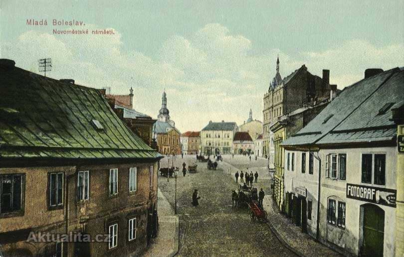 Nové město ( Náměstí míru ) v Mladé Boleslavi se obrovsky změnilo. Od mého dětství zůstalo na místě jen pár budov - kostel sv.Jana Nepomuckého, záložna a na jižní straně náměstí budova, kde sídlila jakési politická škola. Tuším, že v této budově bývala nějaký čas i redakce novin Zář Mladoboleslavska. Na východní straně nezůstalo vlastně nic. Tuším tam jen nějakou restauraci, kde byla dráha na kuželky. Pamatuji, jak z náměstí bylo vlastně autobusové nádraží v noci osvícené několika světly na krásných kandelábrech.