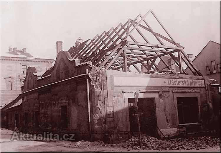 byla Justova jídelna a řeznictví, detail levého domu je ještě na