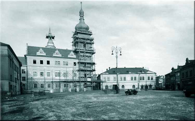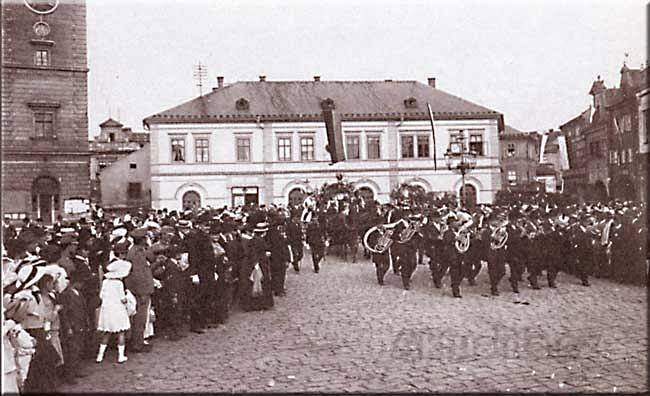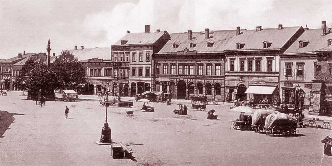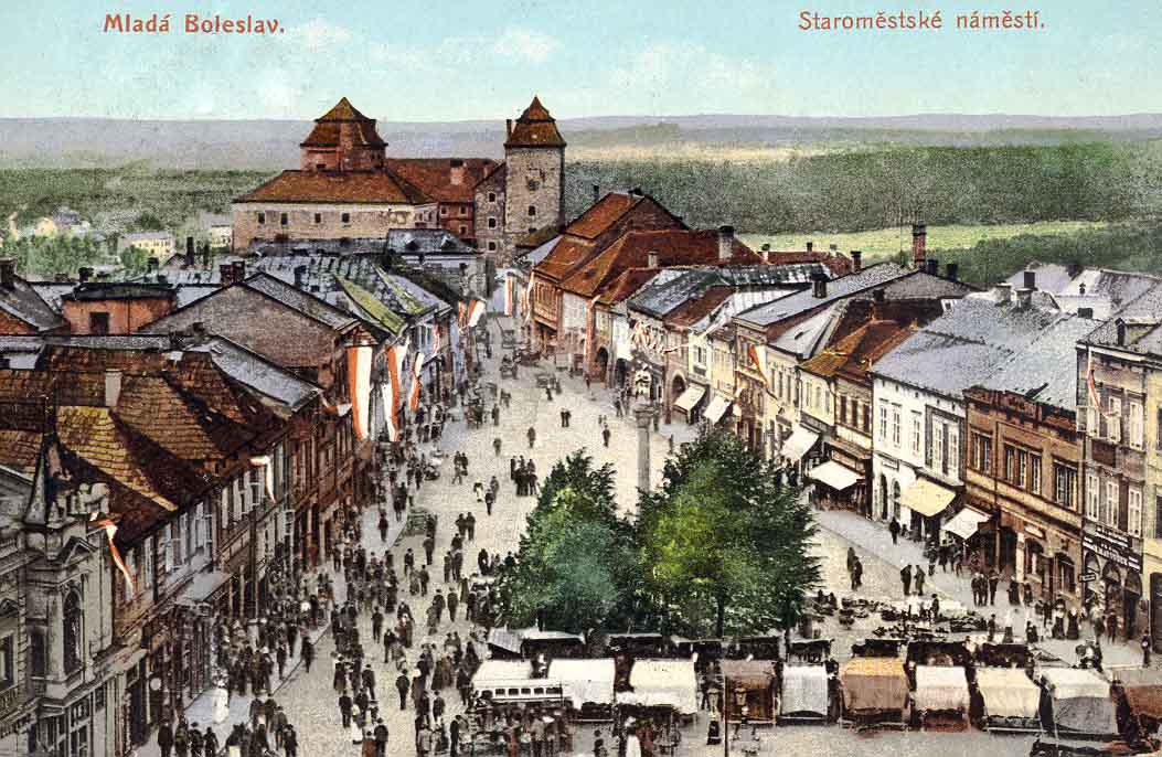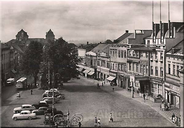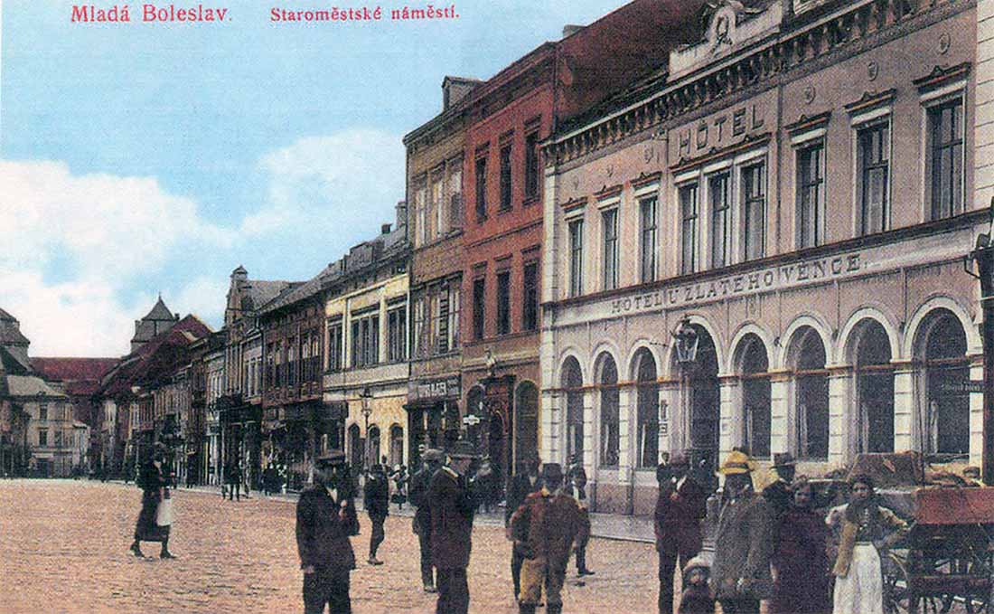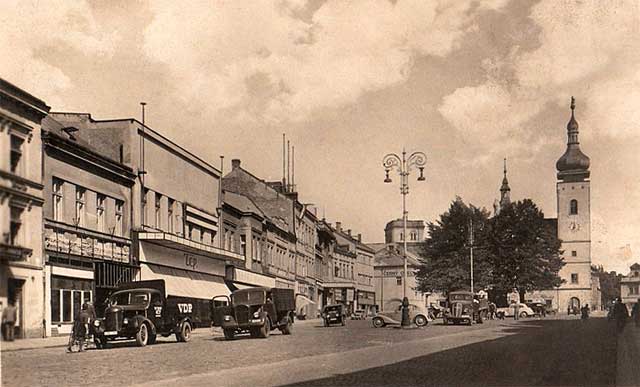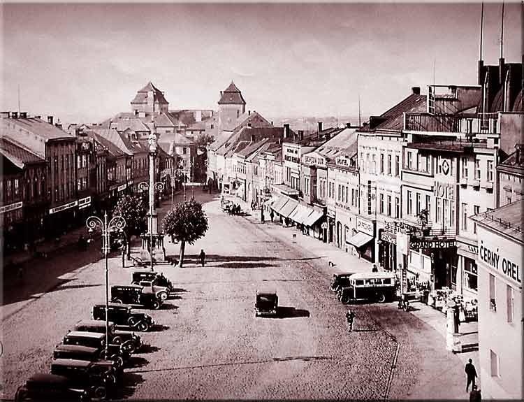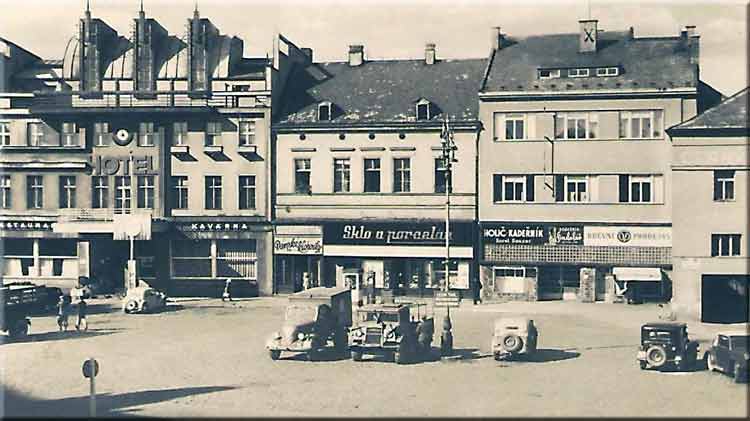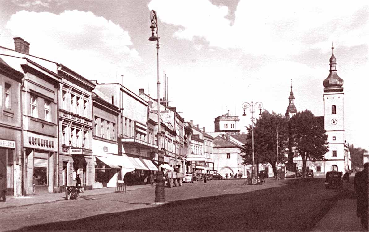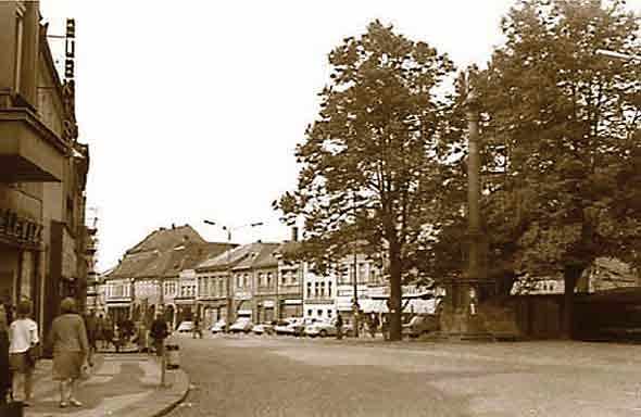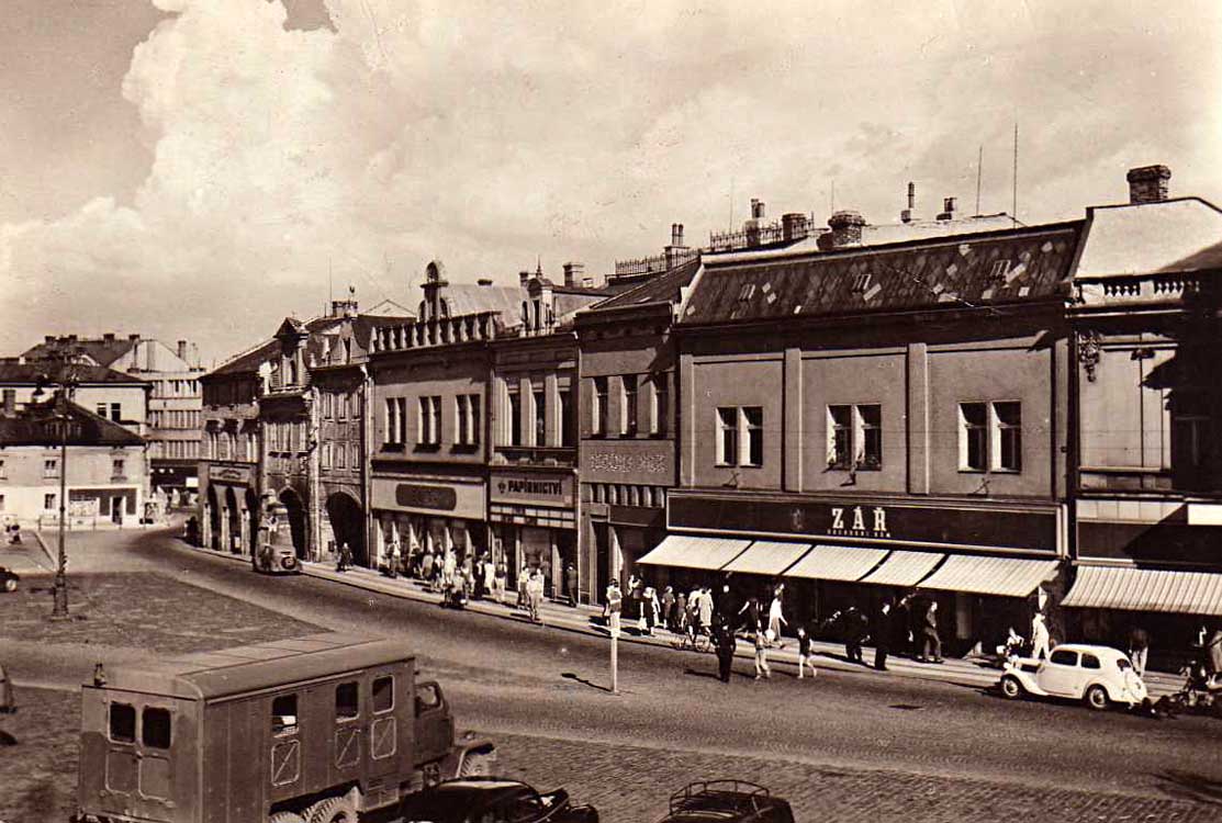 Na východní straně náměstí při vyústění Železné ulice byl kousek podloubí. Tam se skrývala čistírna oděvů, prodejna ovoce a zeleniny a tuším trafika. Vedle podloubí byl Bazar (tam jsem si koupil první plavky adamky za 6 Kčs), bylo tam papírnictví, prodejna elektro a Kovomat - železářství, říkali jsme u Bondyho Tam jsem si zase pořídil skutečné dřeváky za 16,50 Kčs. Na schodištích a po chodbách SVVŠ (gympl) pěkně klapaly. Nevím proč profesoři neměli pro mou dřevěnou obuv pochopení...