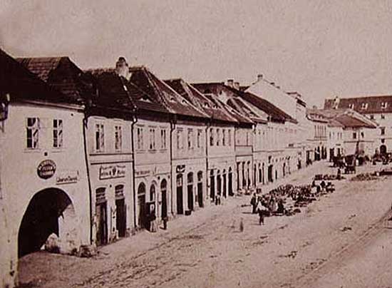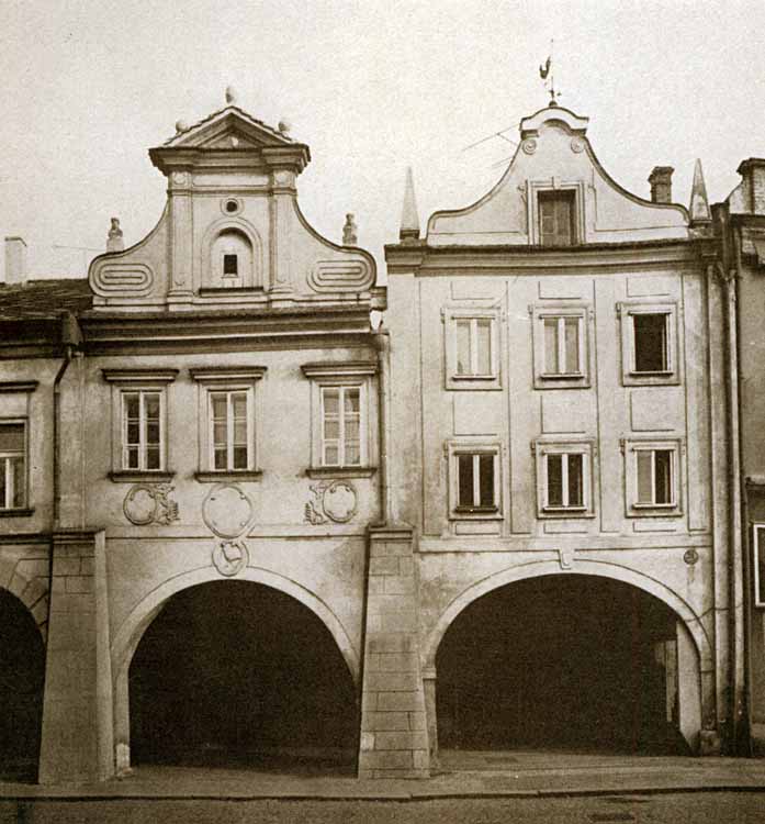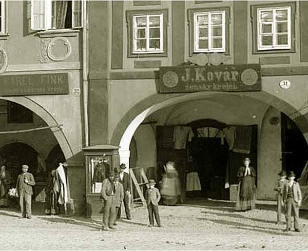 Na západní straně Staroměstského náměstí byla prodejna s porcelánem, níže pak Grand hotel Věnec a kousek pod ním prodejna s látkami. Níže pak byla nějaká hospoda, název jsem už zapomněl. Na konci podloubí před Hradem byla provozována restaurace Jihočeská hoštěnice. A v zatáčce Pražské brány byla akvaristika.