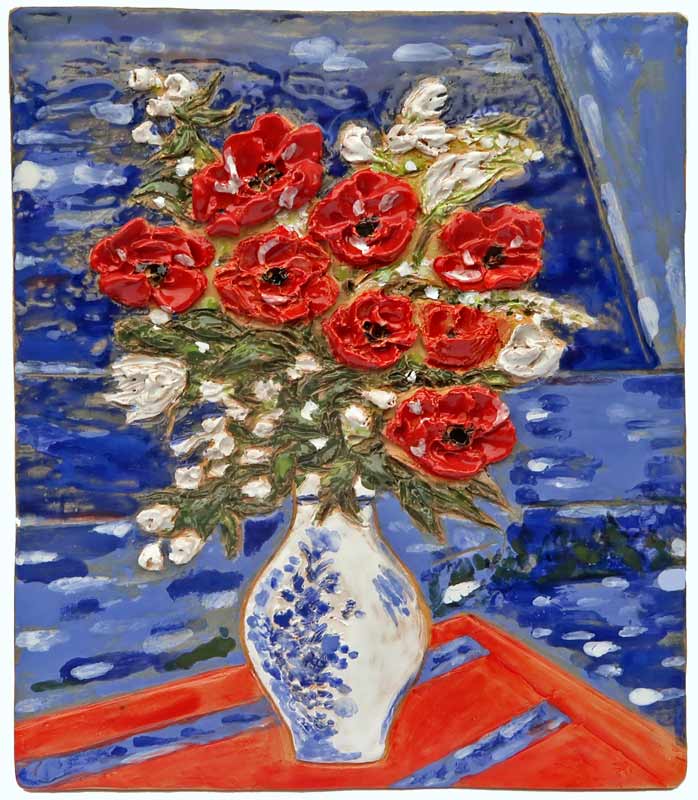 Otevírání zchladlé keramické pece je pro autora malé dobrodružství. Není jisté, zda některý kachel nepraskl, zda se vyvedla barevnost dle představ. Tekuté glazury mají při nanášení na střep zcela jinou barvu.