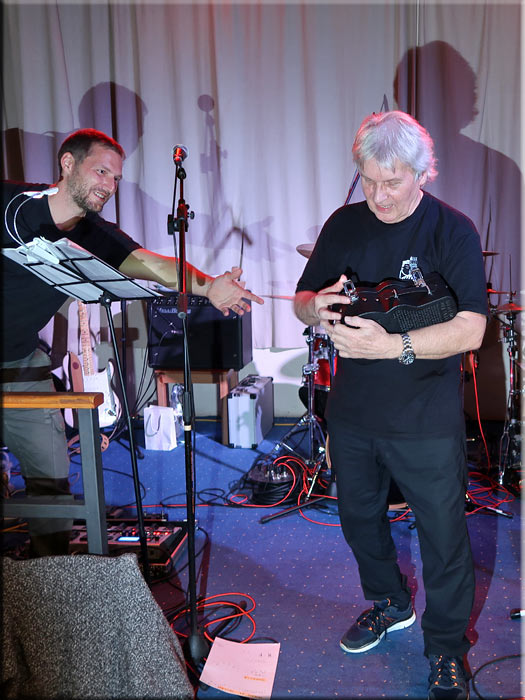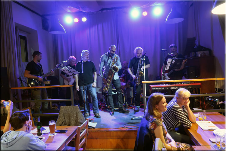 Produkce byla zahájena v 19 hodin ve standardním obsazení. Po několika skladbách přišli na podium i bývalí hudebníci Bolestí. Jmenovitě Vít Malinovský - tenor sax, Miroslav Bureš - baryton sax, Jan Emmer - bicí. V tu ránu dostávají pro mne skladby jiný šmrnc.