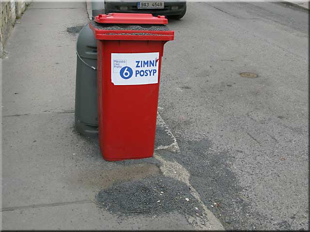 Už od podzimu byly oranžové popelnice naplněny posypovým materiálem k prasknutí.