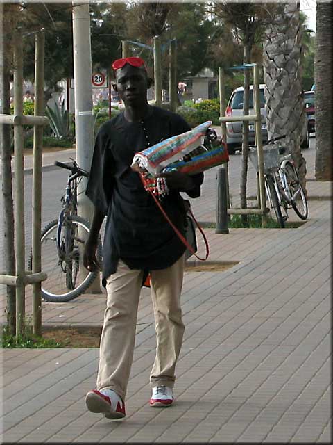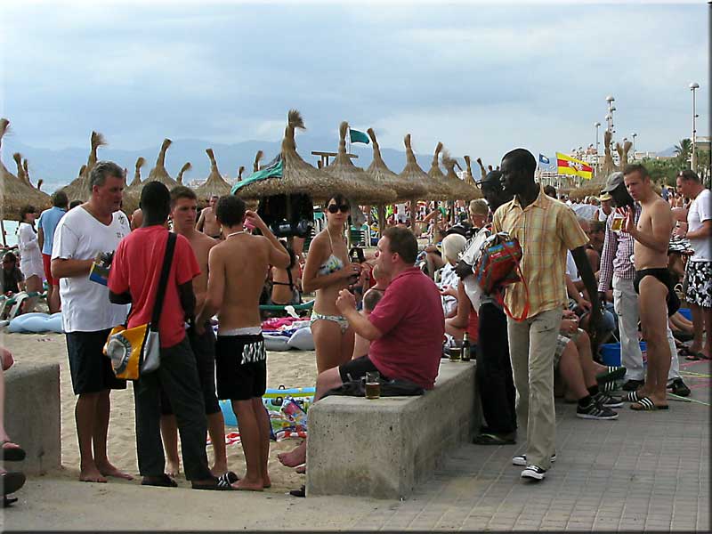 Každopádně se tváří jako prodejci skvělých hodinek. Jak projevíte sebemenší zájem, jste jejich. Dvoje hodinky za cenu jedněch, nebo levnější, nebo troje. Žádné podřadné značky. A za pár šupů. Někdy si prodavači troufnou i na pláž ze dne. Nejlépe do houfu mladších podnapilých Němců. Těm pár euráků nic neříká.