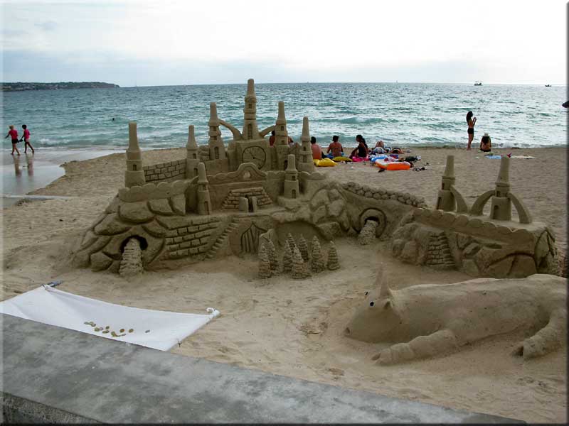 Objevili se na Platja De Palma asi v r. 2010. Mluví rusky, na pláži spí, na pláži žijí. Občas hrad přefouknou nějakým přípravkem, aby stavba vydržela do konce sezóny. Taky jsou rozčilení, pokud si hrad vyfotíte bez placení.