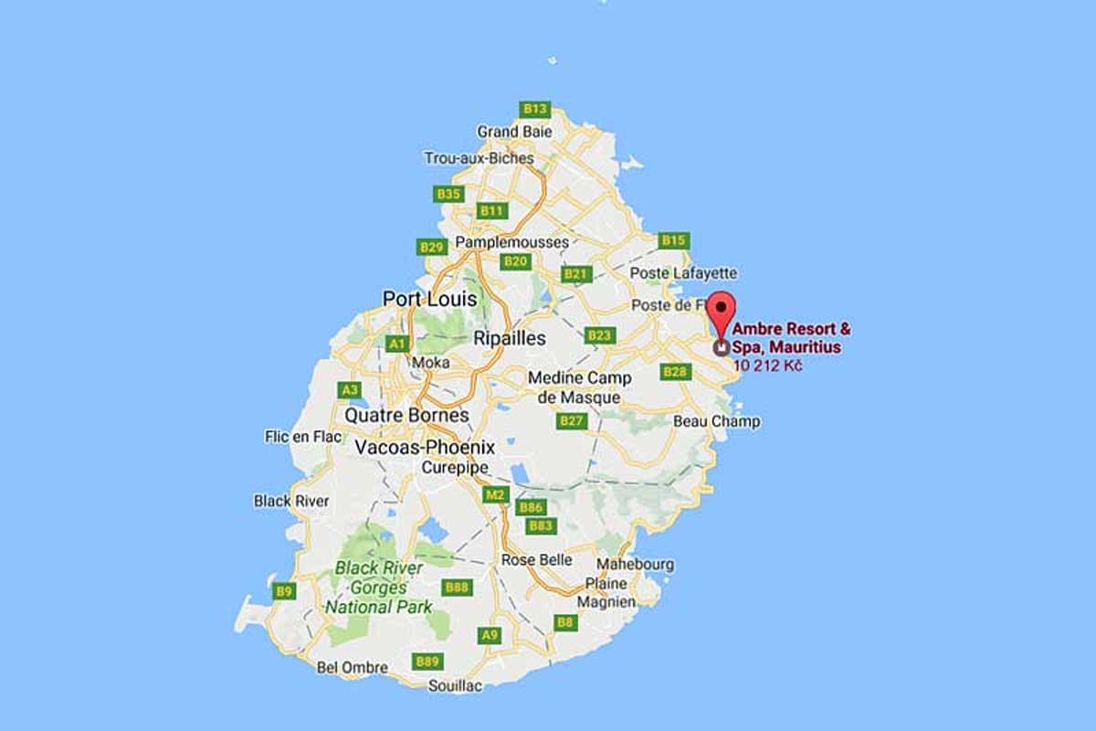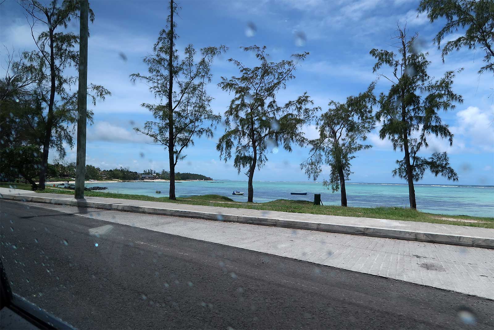 Po odbavení ( včetně zdravotní prohlášení !!! ) na letišti Sir Seewoosagur Ramgoolam International Airport v jižní části ostrova se nás ujala CK Emotions Destinations Management a česky hovořící paní Pavla. Do hotelu Ambre Resort & Spa nás odvezl příjemný taxikář. Byla to slabá hodinka jízdy po celkem slušných silnicích. Jen se nám nezdálo, že řidič jel stále po levé straně vozovky. Každou chvíli pršelo, ale déšť je dle taxikáře vždy jen na 5 minut. Na polích kolem roste hlavně cukrová třtina.