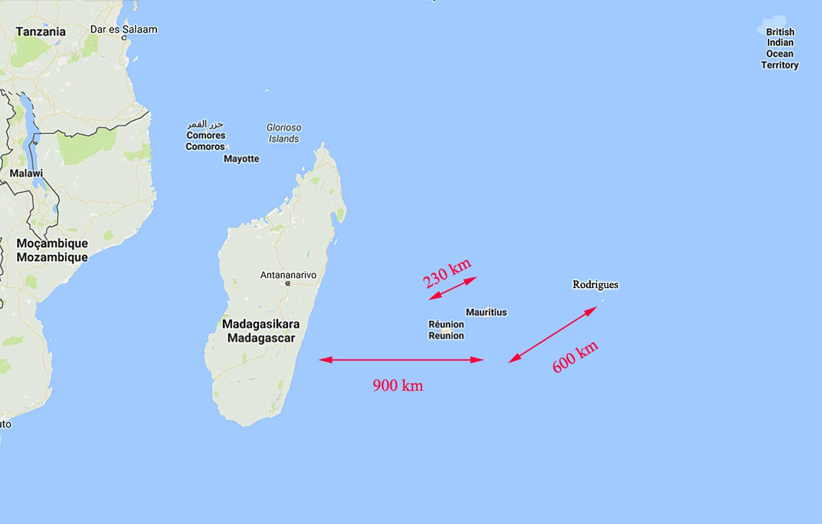 Vzdálenosti Madagaskaru a dalších ostrovů