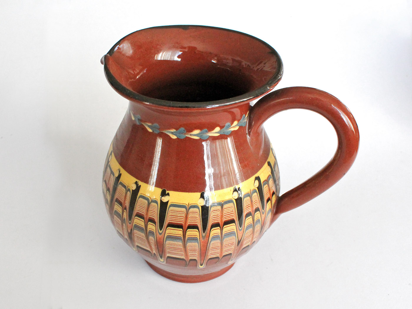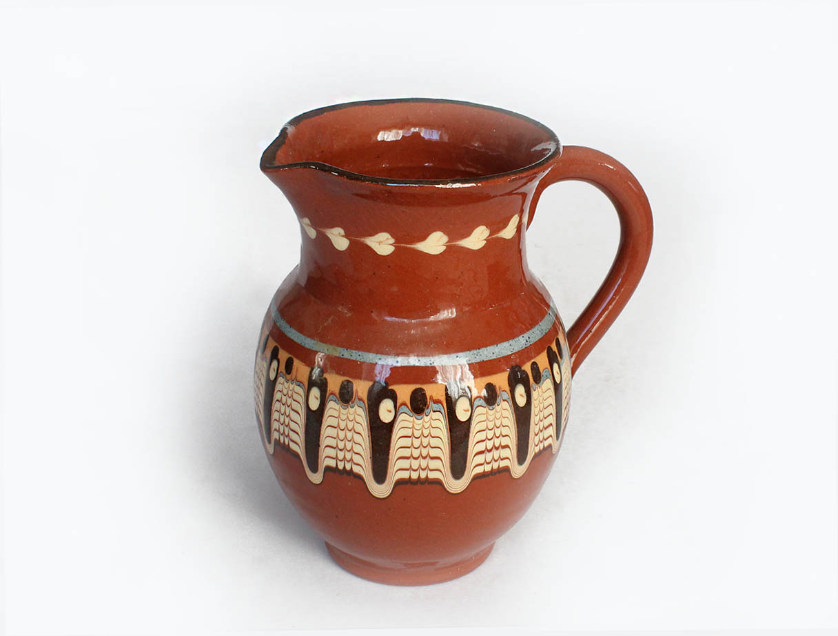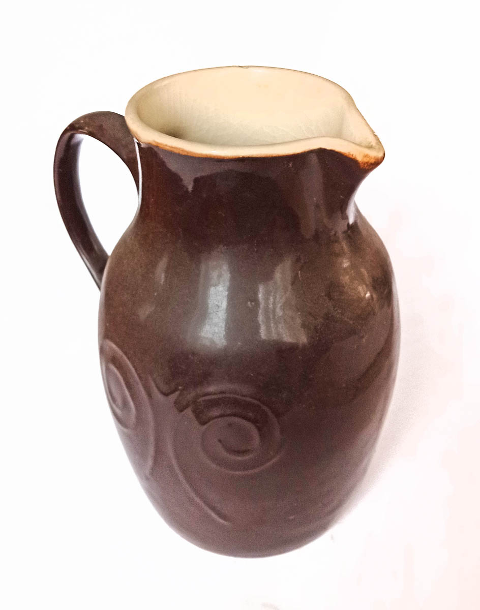 252 Zdobený kameninový krajáček na mléko s hubičkou