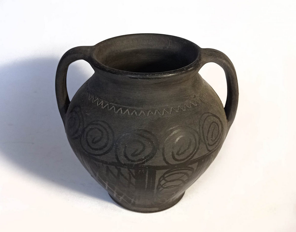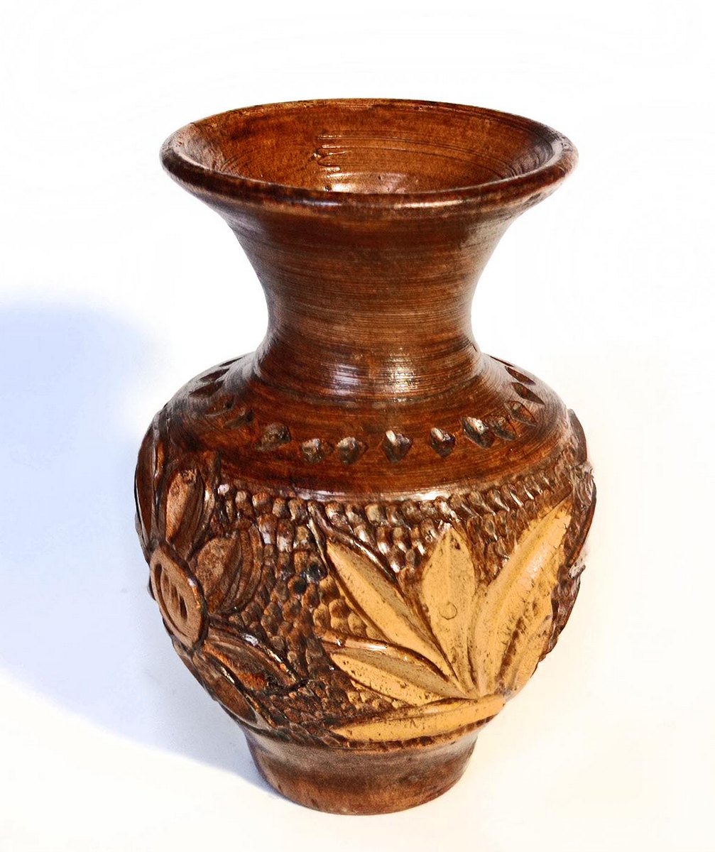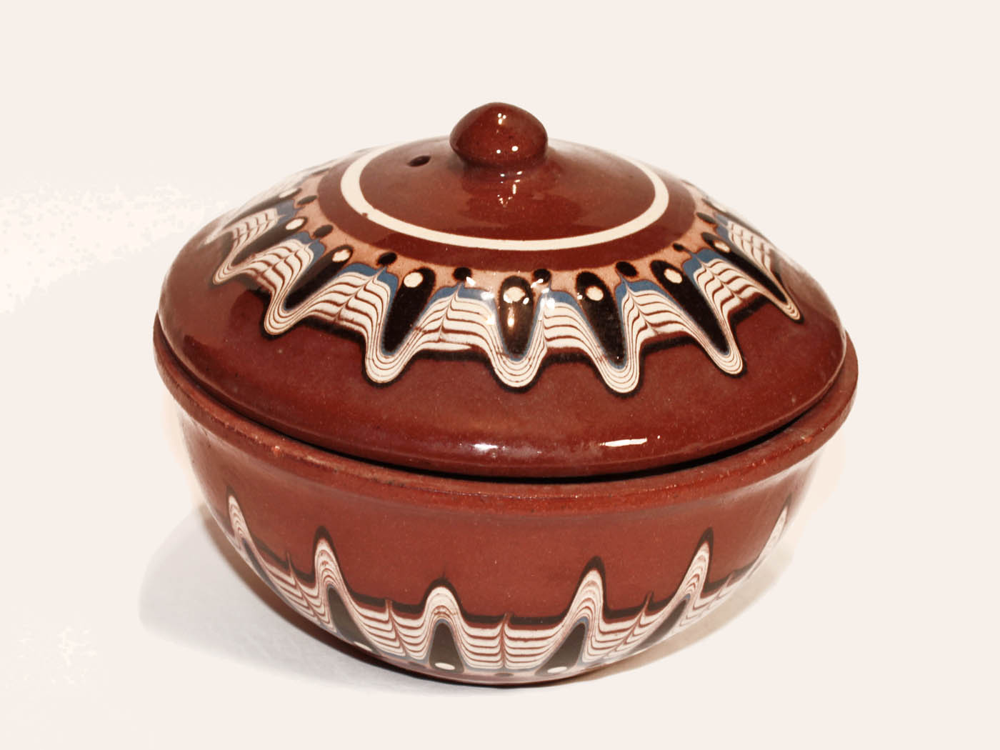 252 Zdobený kameninový krajáček na mléko s hubičkou