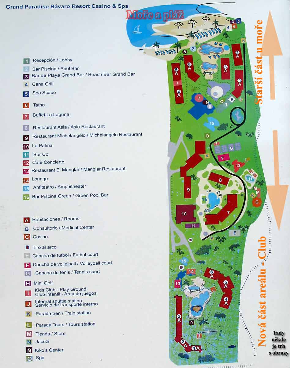 Při pobřeží je starší část areálu Grand Paradise Bávaro Beach, dále od pobřeží