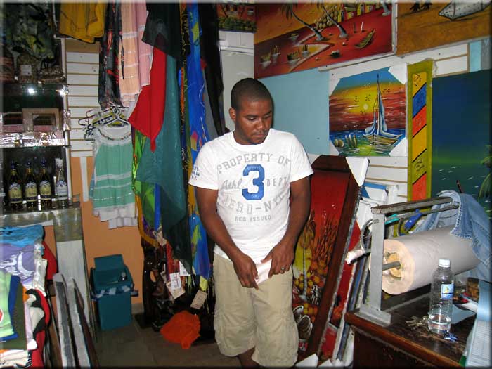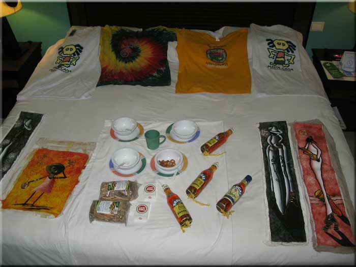 všechny možné suvenýry, obrazy ve stylu Beach Art, alkohol, cigarety.