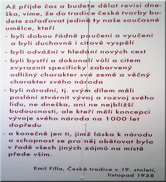 Na výstavě jsou vystaveny umělecká díla Antonína Slavíčka, Antonína Hudečka, Václava Špály, Josefa Schussera, Ludvíka Kuby, Joži Úprky, Stanislava Lolka, Maxe Švabinského, Vojtěcha Preissiga, Jana Preislera, Františka Kupky či Václava Radimského a dalších..